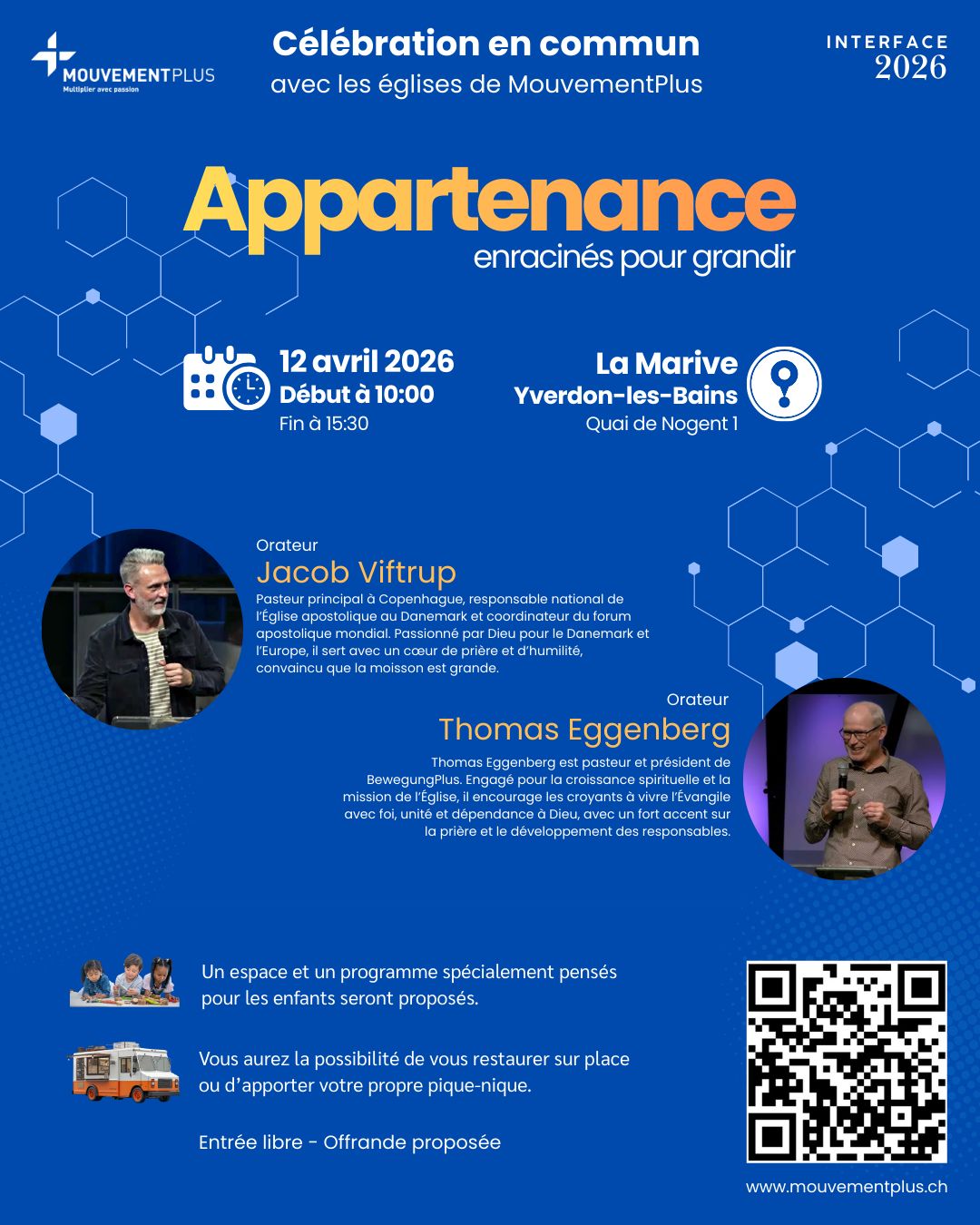 Notre mouvement d’églises a été longtemps connu en Suisse romande sous le nom des Eglises Evangéliques Apostoliques en Suisse romande (EEAR). Il a changé de nom récemment pour visiblement manifester sa dimension nationale avec notre mouvement suisse-allemand nommé déjà BewegungPlus. Nous avons également une même identité visuelle au niveau suisse. Depuis l’année dernière nous sommes en relation avec un réseau d’églises tessinois qui souhaite travailler avec notre mouvement apostolique. Notre cœur est ainsi pour la Suisse entière et les nations. En effet MouvementPlus et BewegungPlus ont ensemble une organisation missionnaire appelée MissionPlus, active en Asie et en Afrique principalement...